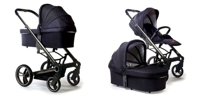 Коляски для двойни различаются по расположению блоков на шасси: они могут устанавливаться бок о бок, друг за другом («паровозик» или «тандем») или друг напротив друга. В остальном они обладают теми же качествами, что и остальные коляски.